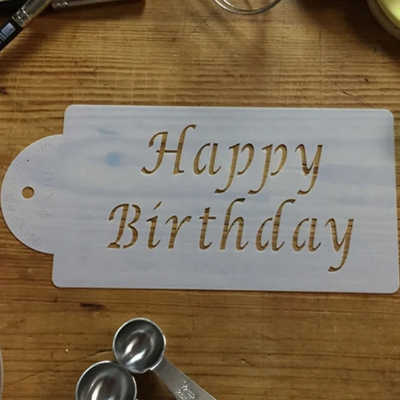 Mサイズ/「HAPPY BIRTHDAY」メッセージのステンシルプレートです。