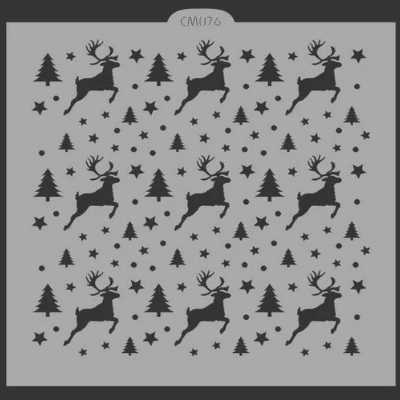 アメリカ製 ステンシルプレート ミニトナカイ&ツリー&スター [DS-CM076]